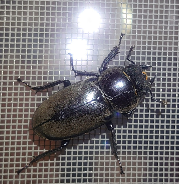 ▲昨晩、自宅の外灯に飛来したオオクワゴモドキの雄。