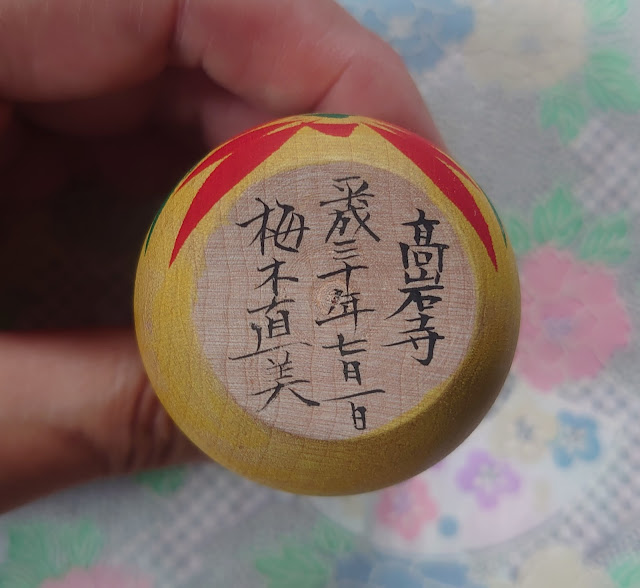 ▲先日、メルカリで入手したちょっと変わったこけし。猫の顔をした達磨の上にこけしの顔が乗っかっている。高さは2寸半しかなく、小さくてかわいい。出品者様は、この前こげすをゆずってくれた東京都の方。